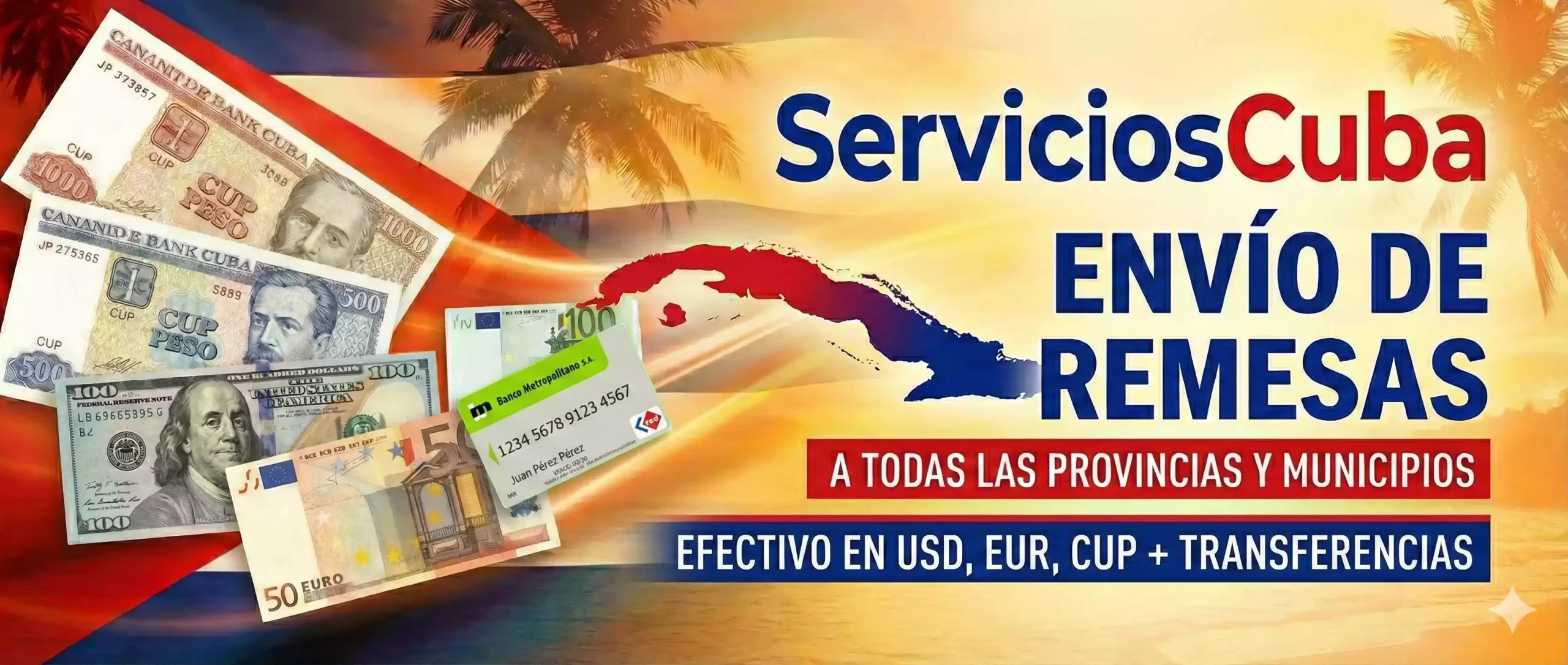 Remesas en efectivo USD y CUP a todas las provincias y los 168 municipios de Cuba Entregamos en el domicilio del destinatario que nos indiques Tabla de Precios Precios incluyen … ENTREGA DE USD EN EFECTIVO Envía EUR Recibe USD, CUP, MLC (efectivo o transferencia) Paga 115 € y recibe... 100 USD Solicitar Envía EUR Recibe USD, CUP, MLC (efectivo o transferencia) Paga 170 € y recibe... 150 USD Solicitar Envía EUR Recibe USD, CUP, MLC (efectivo o transferencia) Paga 280 € y recibe... 250 USD Solicitar Consúltanos aquí para otras cantidades